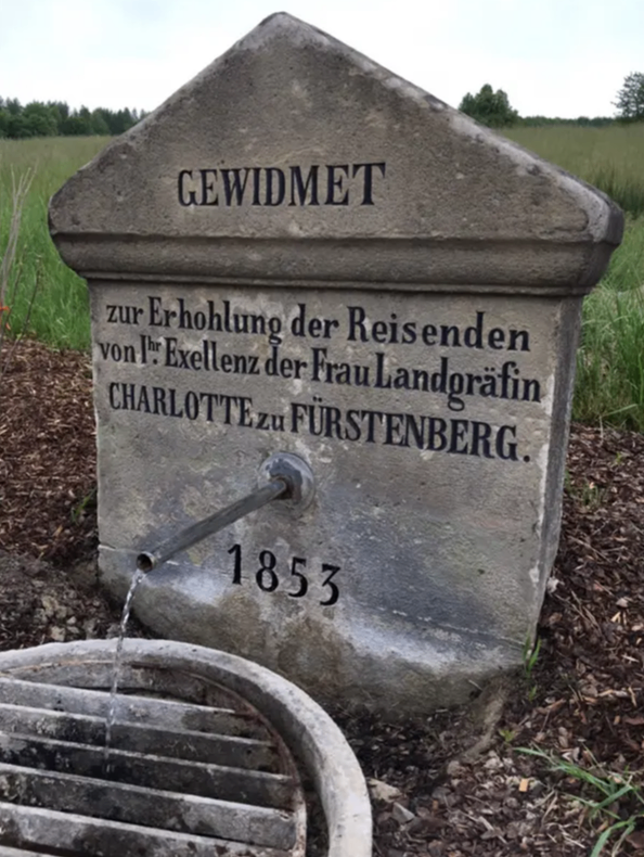 Er fasste seine geliebte Quelle in einen viereckigen Stein, der mit einem Giebel gekrönt ist und vier Metalltafeln mit folgenden Inschriften trägt: